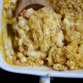 This Southern Macaroni and Cheese Recipe is a rich, creamy baked mac and cheese with a crunchy topping. It's a heirloom family recipe and a favorite comfort food loved for generations! Make-ahead and freezer-friendly!