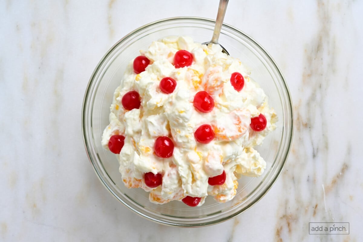 - Cherry Control: Pat maraschino cherries dry to prevent pink bleeding into the salad.